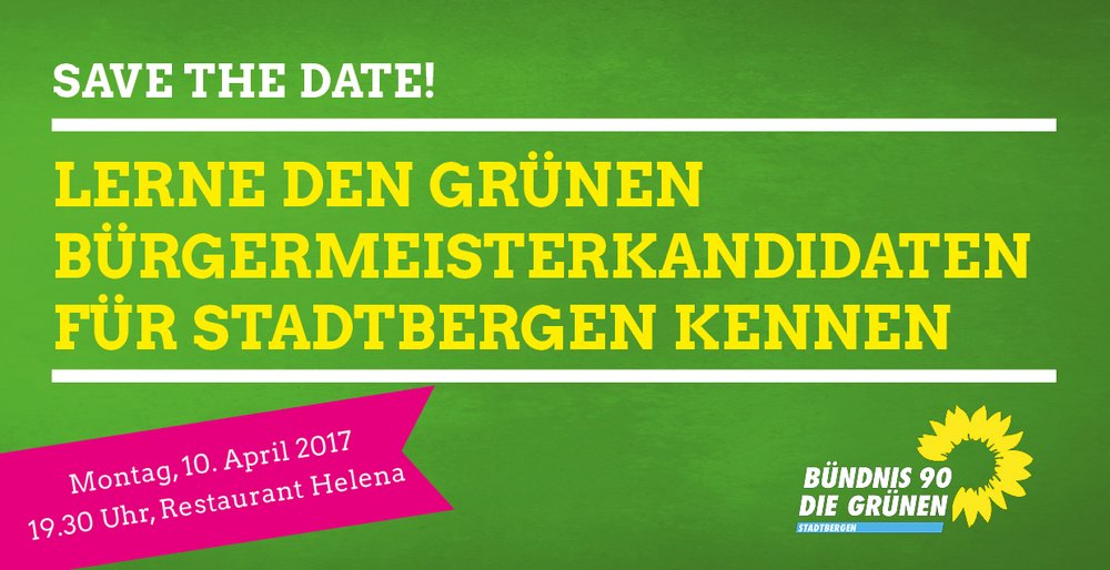 am Montag, den 10. April 17 bin ich ab 19.30 im Restaurant Helena und würde mich freuen, mit allen Interessierten ins Gespräch zu kommen, mich Ihren und Euren Fragen zu stellen oder ganz unverbindlich über Stadtbergen oder Grüne Politik zu sprechen.